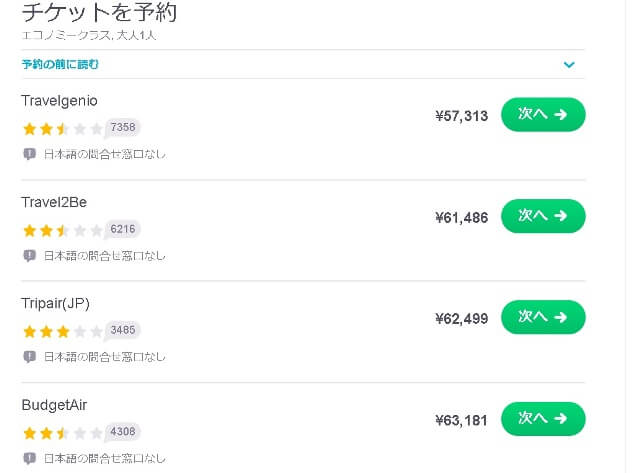 - 航空券の値段はどこも同じじゃない