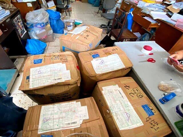 送られてきた荷物は郵便局に取りに行き、中身を確認の上、仕分けを行います。